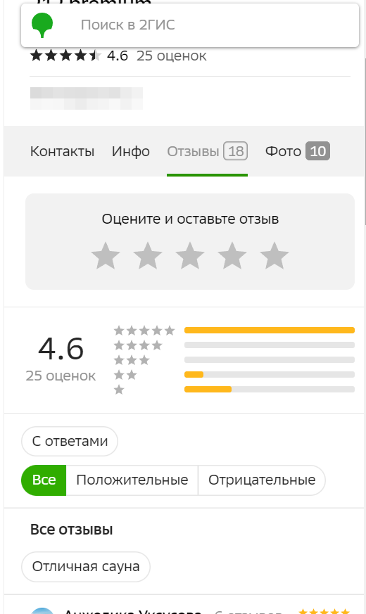 В результате проведенной работы рейтинг компании на 2ГИС значительно улучшился. До начала сотрудничества рейтинг составлял 1.8 балла, после выполнения услуги рейтинг вырос до 4.6 балла.